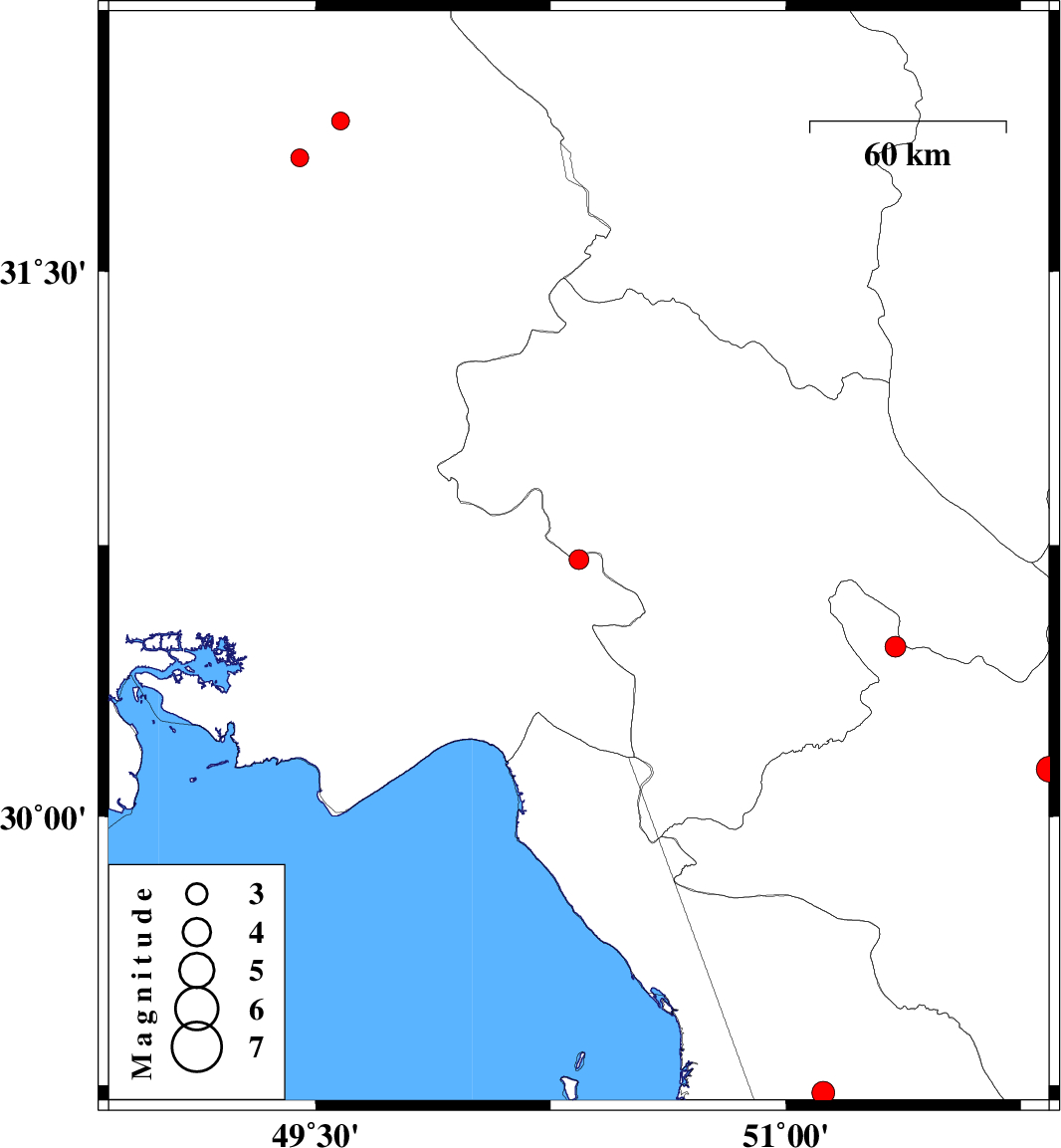| 2011/06/28 | 06:27:41.8 | 10:57:41.8 | 30.47 | 51.35 | 45 | ML:3 | Fars Province, 31 km South-West of Yasuj |