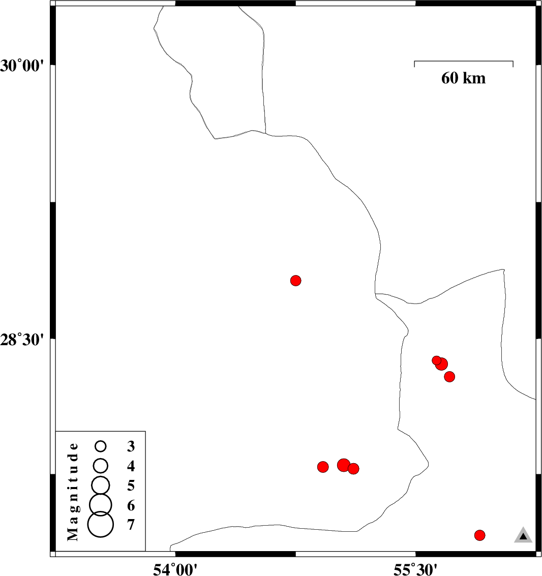 | 2011/06/29 | 10:20:51.4 | 14:50:51.4 | 27.78 | 55.11 | 15 | ML:3.1 | Fars Province, 76 km North-East of Lar | ||