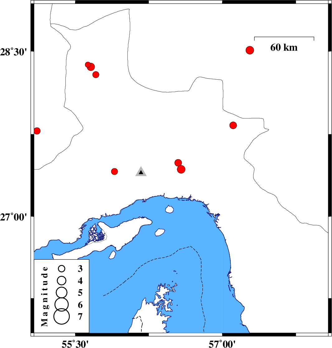 | 2011/06/29 | 10:20:51.4 | 14:50:51.4 | 27.78 | 55.11 | 15 | ML:3.1 | Fars Province, 76 km North-East of Lar | ||