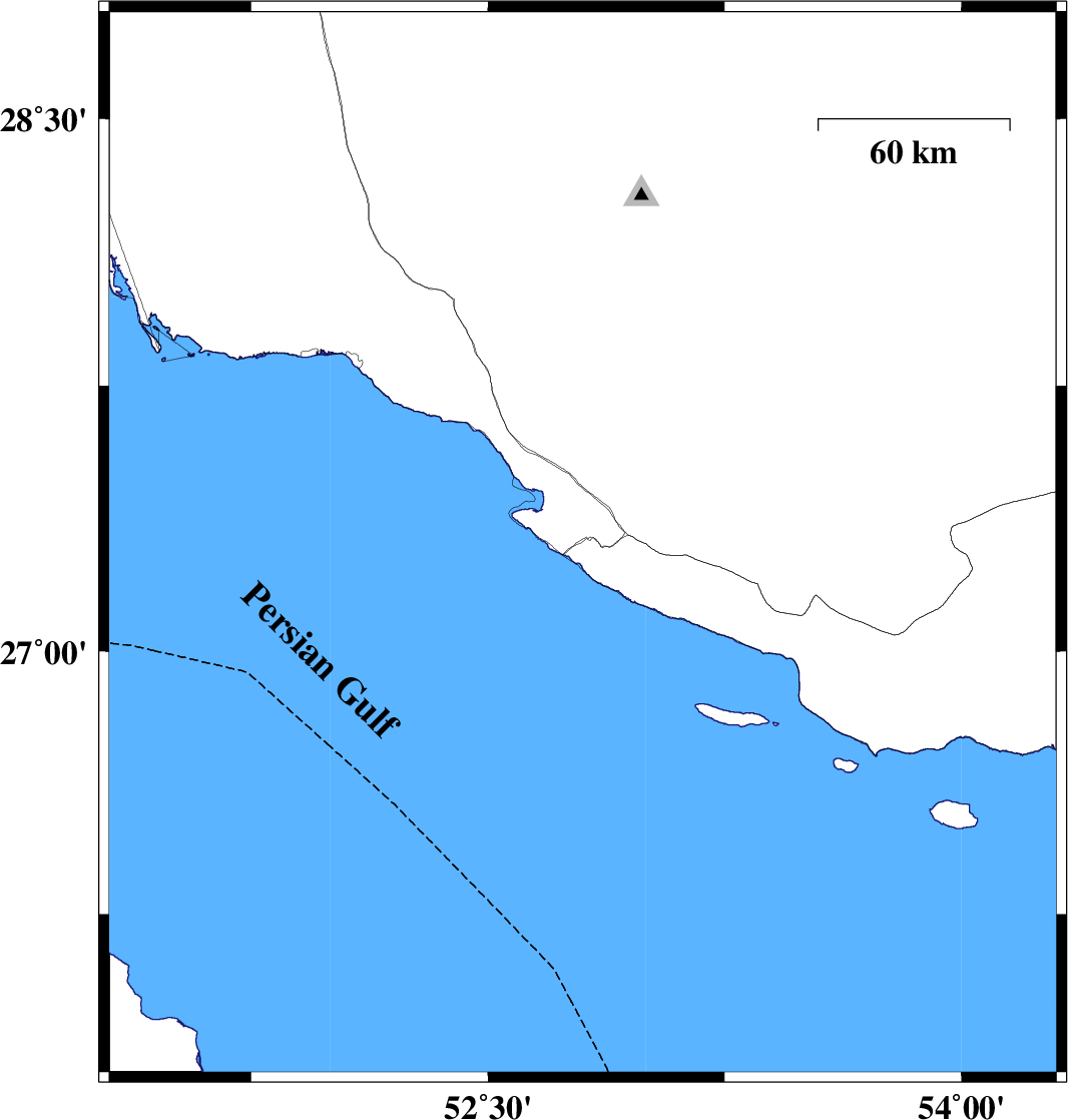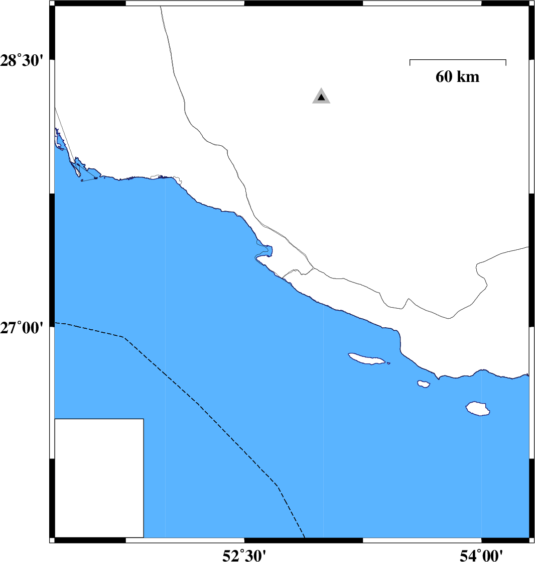 | 2011/07/30 | 20:34:42.7 | 01:04:42.7 | 27.3 | 52.8 | 15 | ML:3.1 | Hormozgan Province, 29 km South of Mehr |