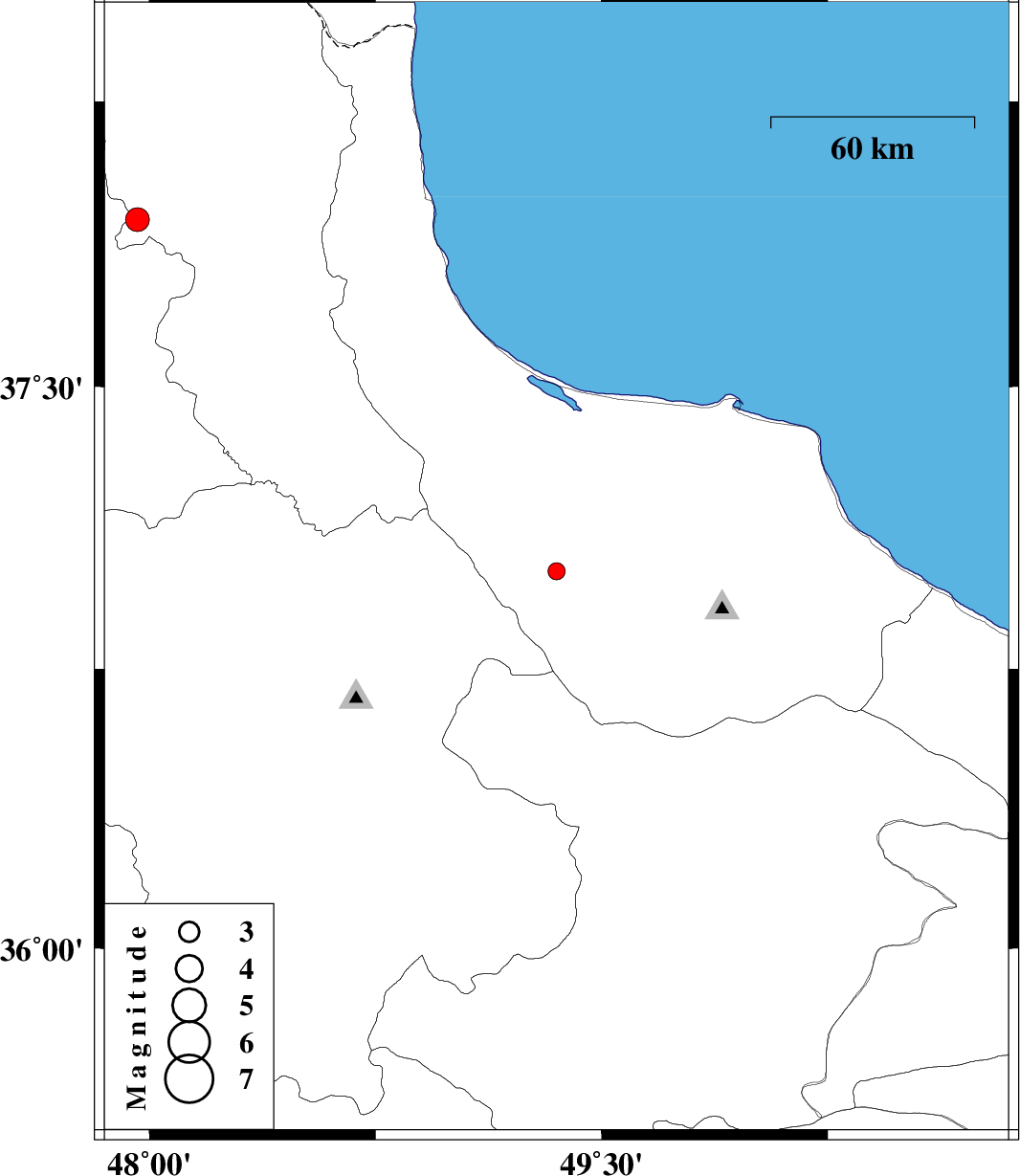 | 2011/07/31 | 04:41:04.3 | 09:11:04.3 | 37.01 | 49.35 | 15 | ML:2.5 | Gilan Province, 18 km South of Shaft | ||