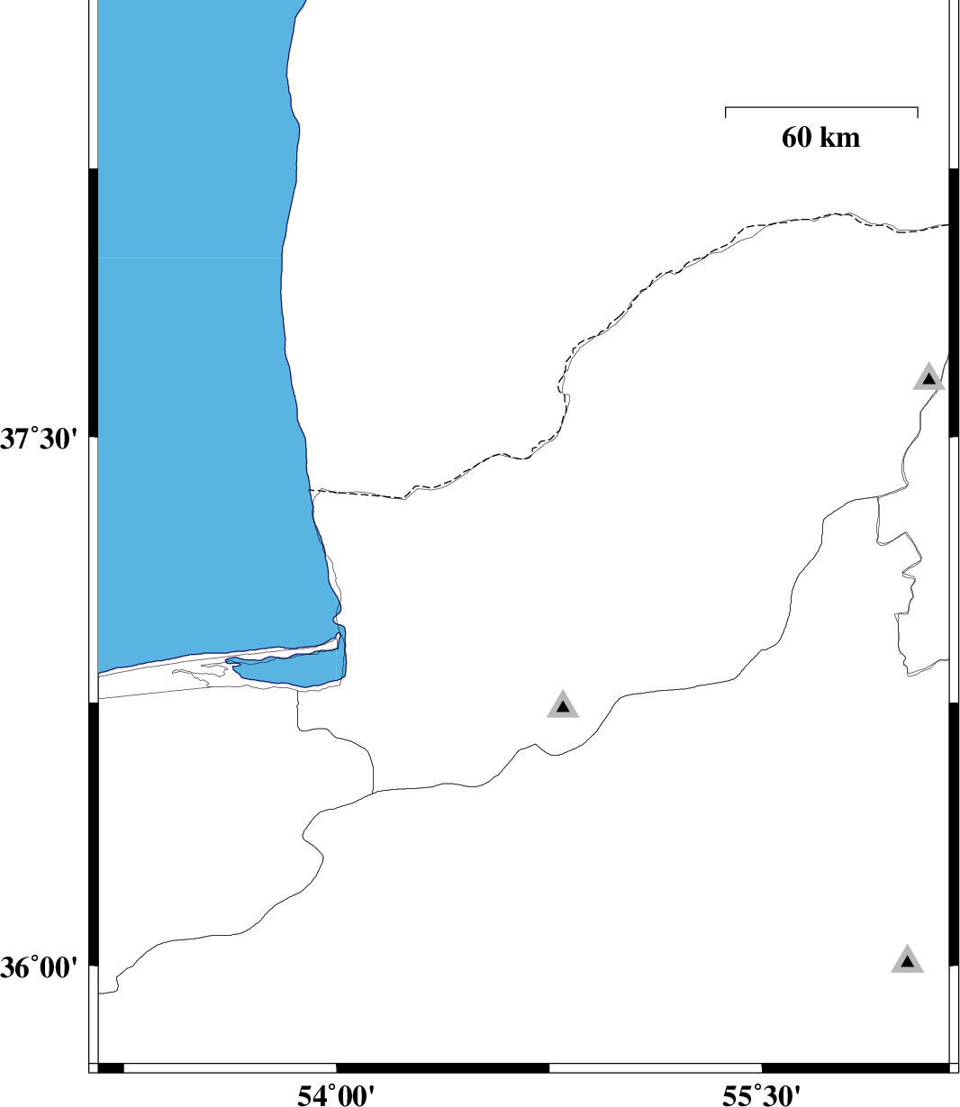 | 2011/07/30 | 06:58:27.3 | 11:28:27.3 | 36.83 | 55.26 | 14 | ML:3 | Golestan Province, 23 km South-East of Ramian | ||