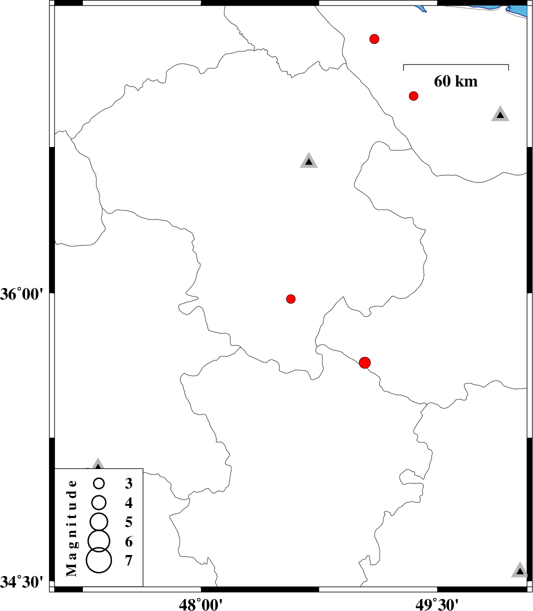 | 2011/07/23 | 14:37:48.3 | 19:07:48.3 | 37.3 | 49.1 | 14 | ML:2.7 | Gilan Province, 14 km South of Masal | ||