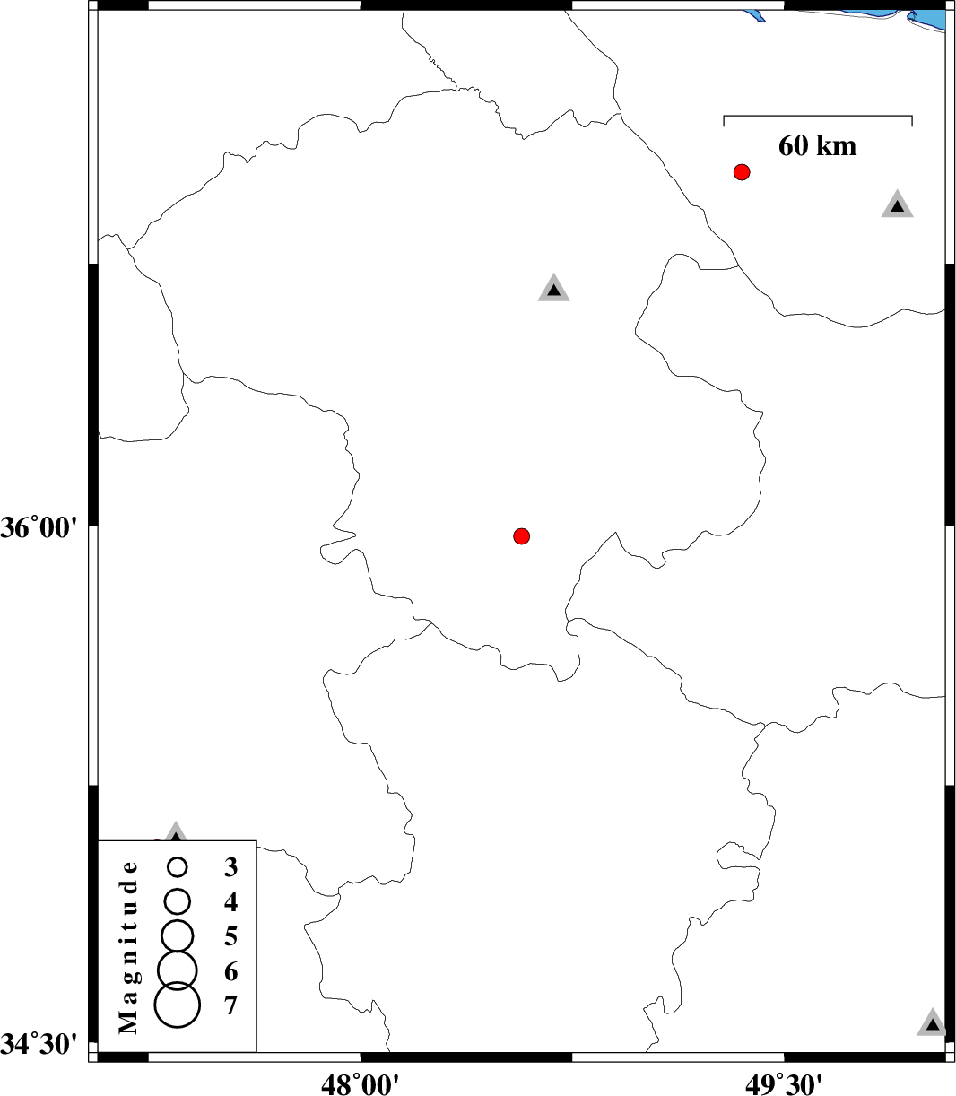 | 2011/08/02 | 10:29:23.4 | 14:59:23.4 | 35.97 | 48.57 | 14 | ML:2.6 | Zanjan Province, 16 km South of Qeydar | ||