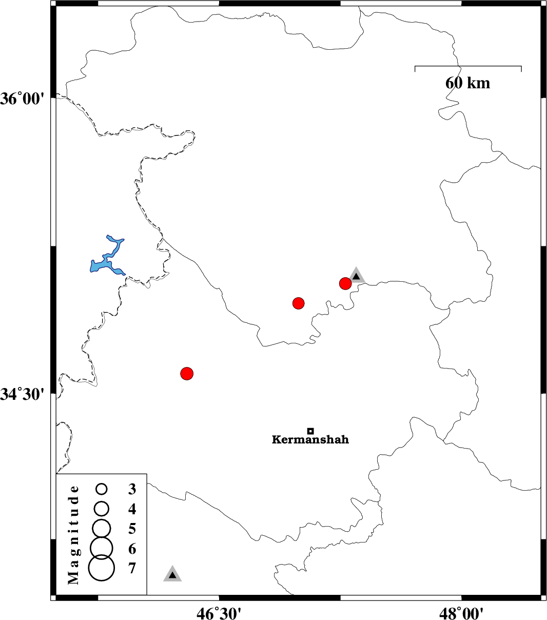| 2011/07/14 | 20:56:51.0 | 01:26:51.0 | 34.6 | 46.3 | 7 | ML:3.5 | Kermanshah Province, 29 km South-West of Javanrud |