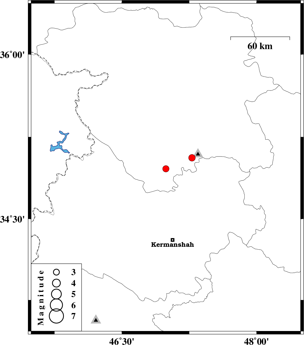 | 2011/08/02 | 10:54:07.0 | 15:24:07.0 | 34.96 | 46.99 | 15 | ML:3.3 | Kordestan Province, 16 km North of Kamyaran | ||