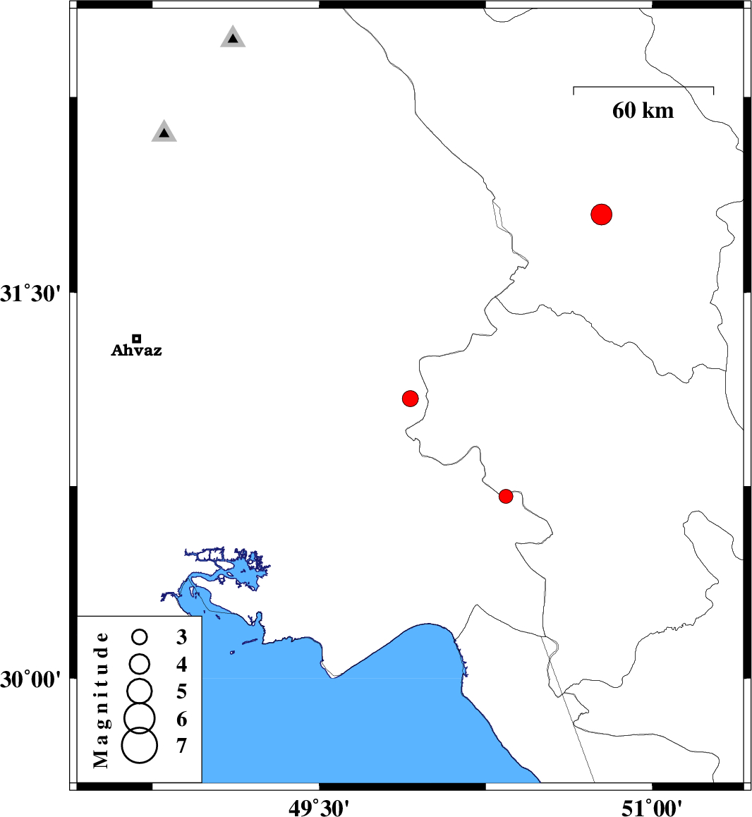 | 2011/08/04 | 01:54:37.6 | 06:24:37.6 | 31.09 | 49.91 | 14 | ML:3.2 | Khoozestan Province, 47 km South of Bagh Malek | ||