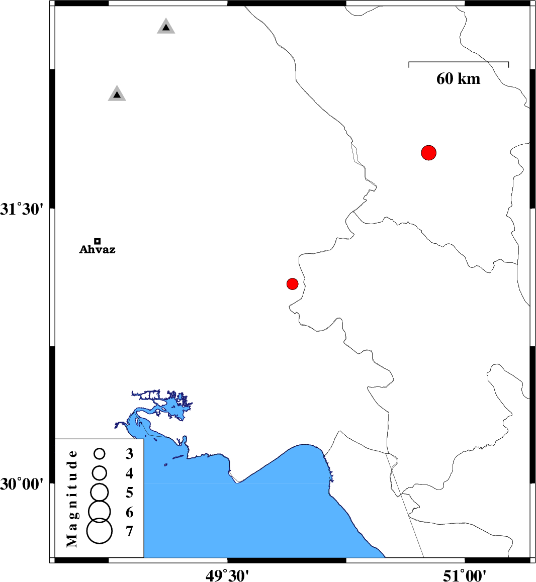 | 2011/08/04 | 01:54:37.6 | 06:24:37.6 | 31.09 | 49.91 | 14 | ML:3.2 | Khoozestan Province, 47 km South of Bagh Malek | ||