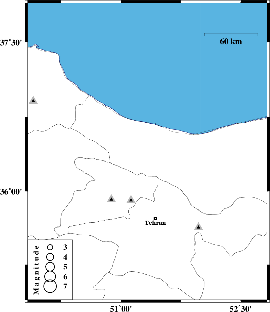 | 2011/08/11 | 12:28:35.6 | 16:58:35.6 | 36.39 | 51.33 | 14 | ML:2.6 | Mazandaran Province, 30 km South of Chalus |