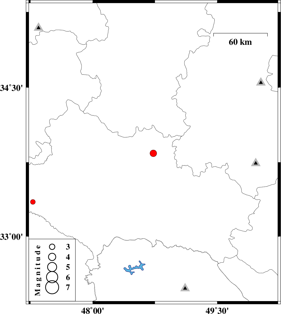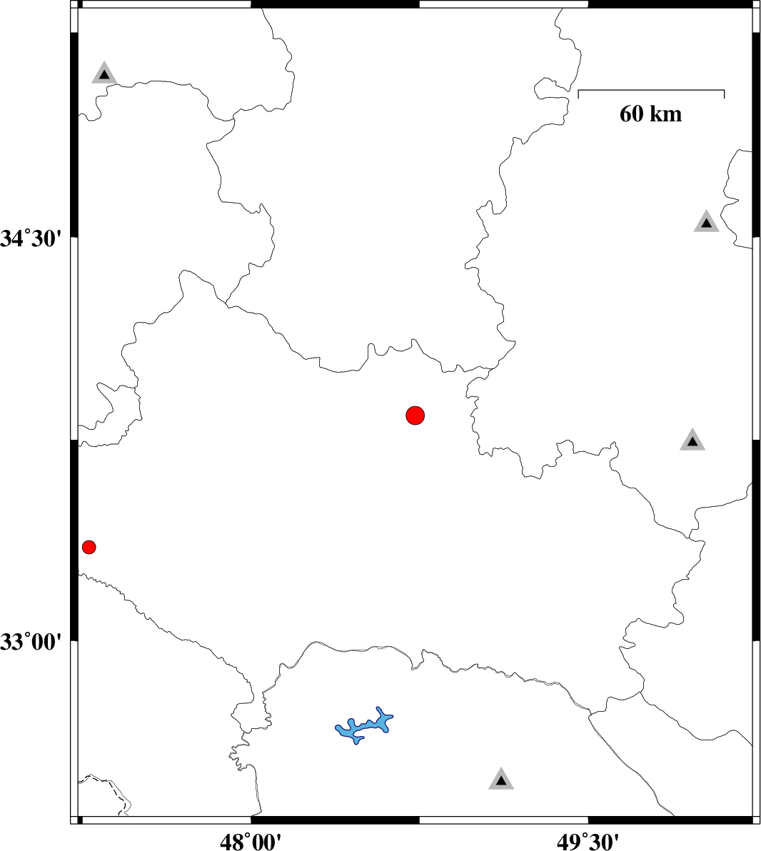 | 2011/08/11 | 08:20:15.8 | 12:50:15.8 | 33.35 | 47.28 | 14 | ML:2.7 | Lorestan Province, 25 km North of Darreh Shahr |