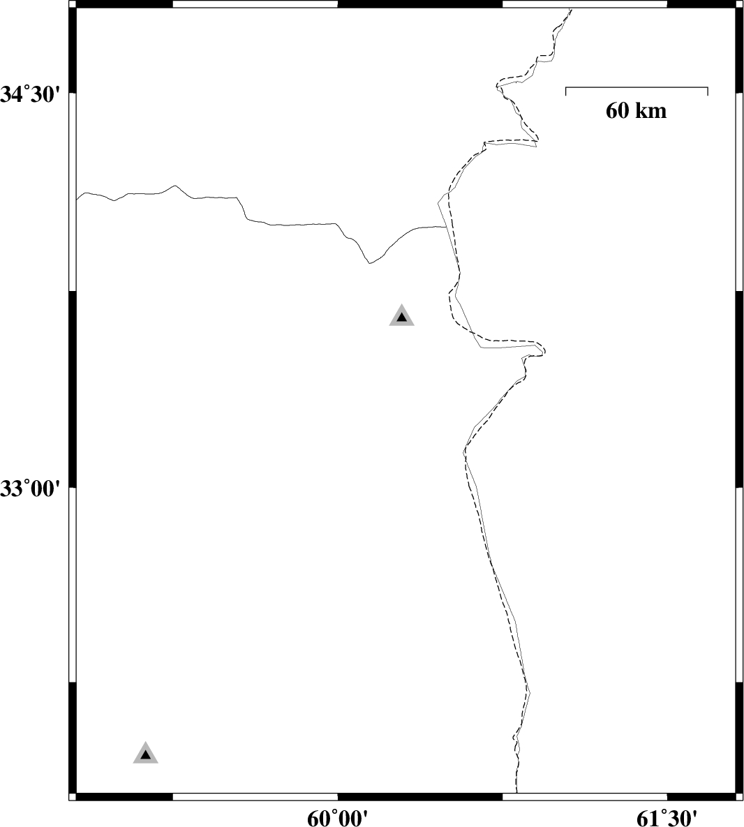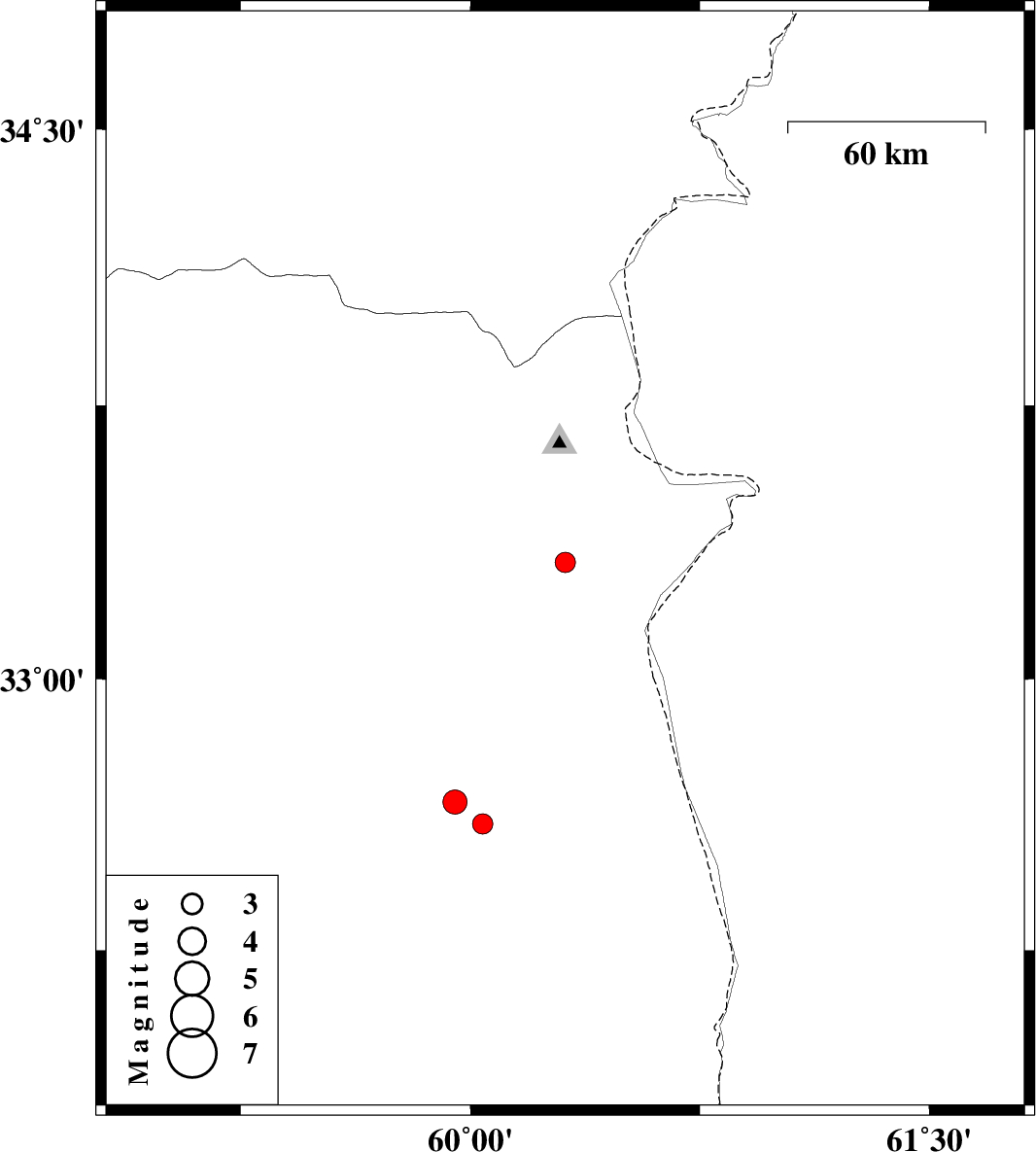 | 2011/08/13 | 01:22:26.8 | 05:52:26.8 | 32.6 | 60.04 | 14 | ML:3 | Khorasan(south) Province, 23 km East of Sarbisheh | ||