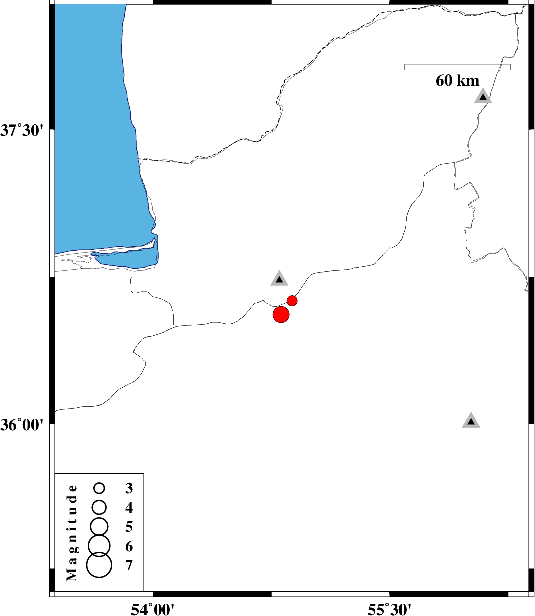 | 2011/08/11 | 22:32:17.2 | 03:02:17.2 | 36.56 | 54.81 | 8 | ML:4.7 | Semnan Province, 21 km North-West of Shahrud |