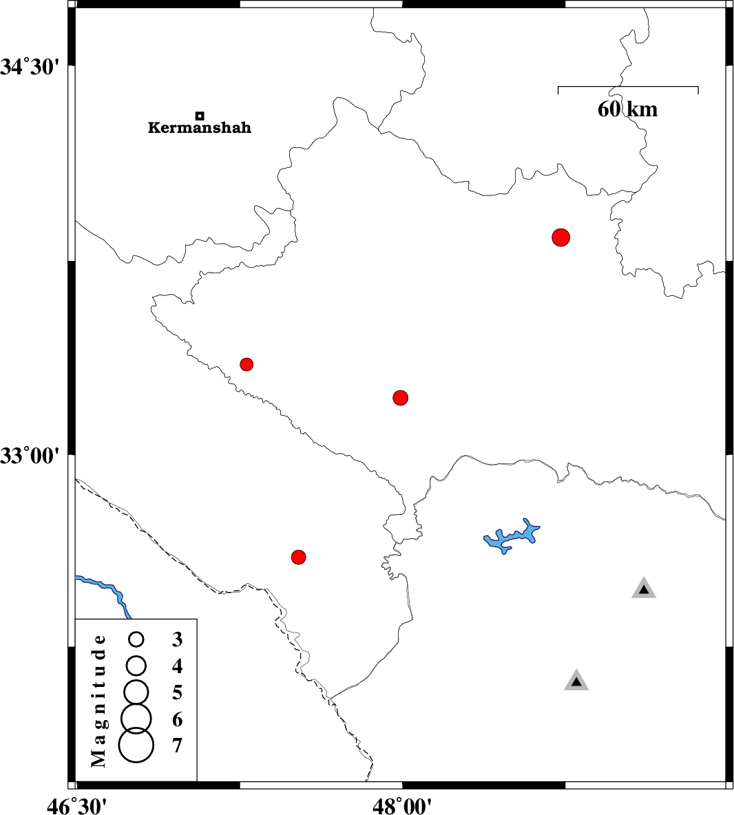 | 2011/08/11 | 08:20:15.8 | 12:50:15.8 | 33.35 | 47.28 | 14 | ML:2.7 | Lorestan Province, 25 km North of Darreh Shahr |