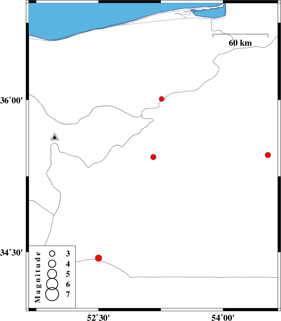 | 2011/08/18 | 16:15:58.9 | 20:45:58.9 | 35.44 | 53.16 | 18 | ML:2.9 | Semnan Province, 26 km South-West of Semnan | ||