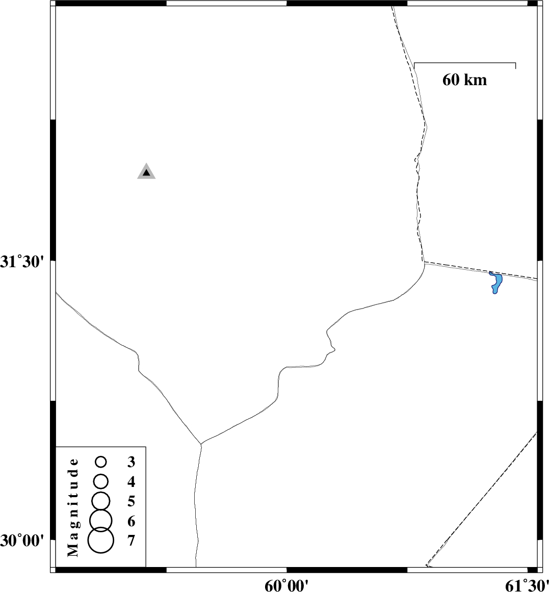 | 2011/08/22 | 19:23:21.7 | 23:53:21.7 | 31.35 | 60.06 | 18 | ML:3.3 | Khorasan(south) Province, 21 km South of Nehbandan |