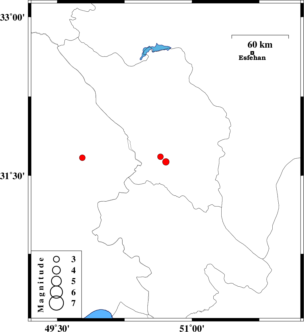 | 2011/08/23 | 13:46:44.1 | 18:16:44.1 | 31.63 | 50.71 | 14 | ML:3.4 | Chaharmahal Bakhtiari Province, 17 km North-West of Lordegan | ||
