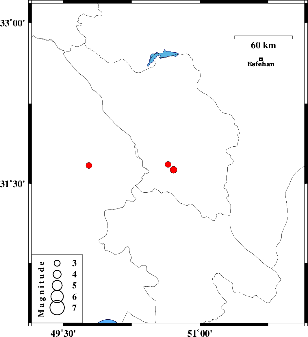 | 2011/08/23 | 13:46:44.1 | 18:16:44.1 | 31.63 | 50.71 | 14 | ML:3.4 | Chaharmahal Bakhtiari Province, 17 km North-West of Lordegan | ||