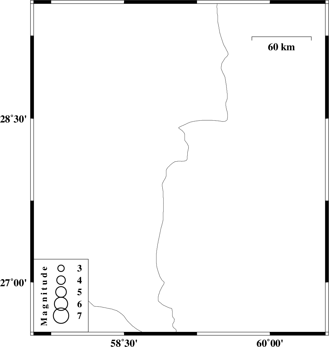 | 2011/08/25 | 20:33:36.7 | 01:03:36.7 | 28.04 | 59.07 | 14 | ML:3 | Sistan va Baloochestan Province, 136 km East of Kahnuj |