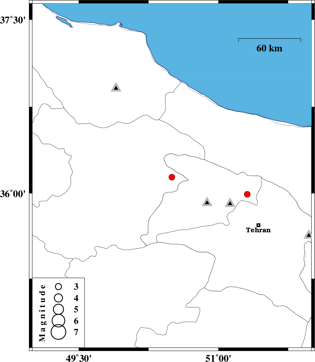 | 2011/08/30 | 09:41:16.7 | 14:11:16.7 | 35.99 | 51.31 | 14 | ML:2.9 | Tehran Province, 24 km North-West of Tajrish |