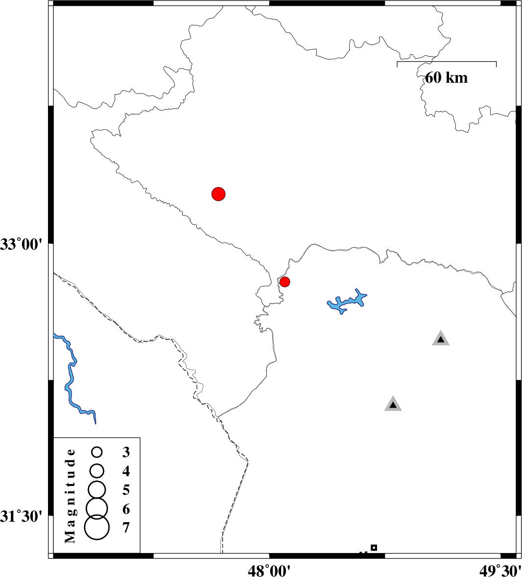 | 2011/09/02 | 02:30:27.4 | 07:00:27.4 | 33.27 | 47.67 | 29 | ML:3.9 | Lorestan Province, 14 km North of Pol-e dokhtar | ||