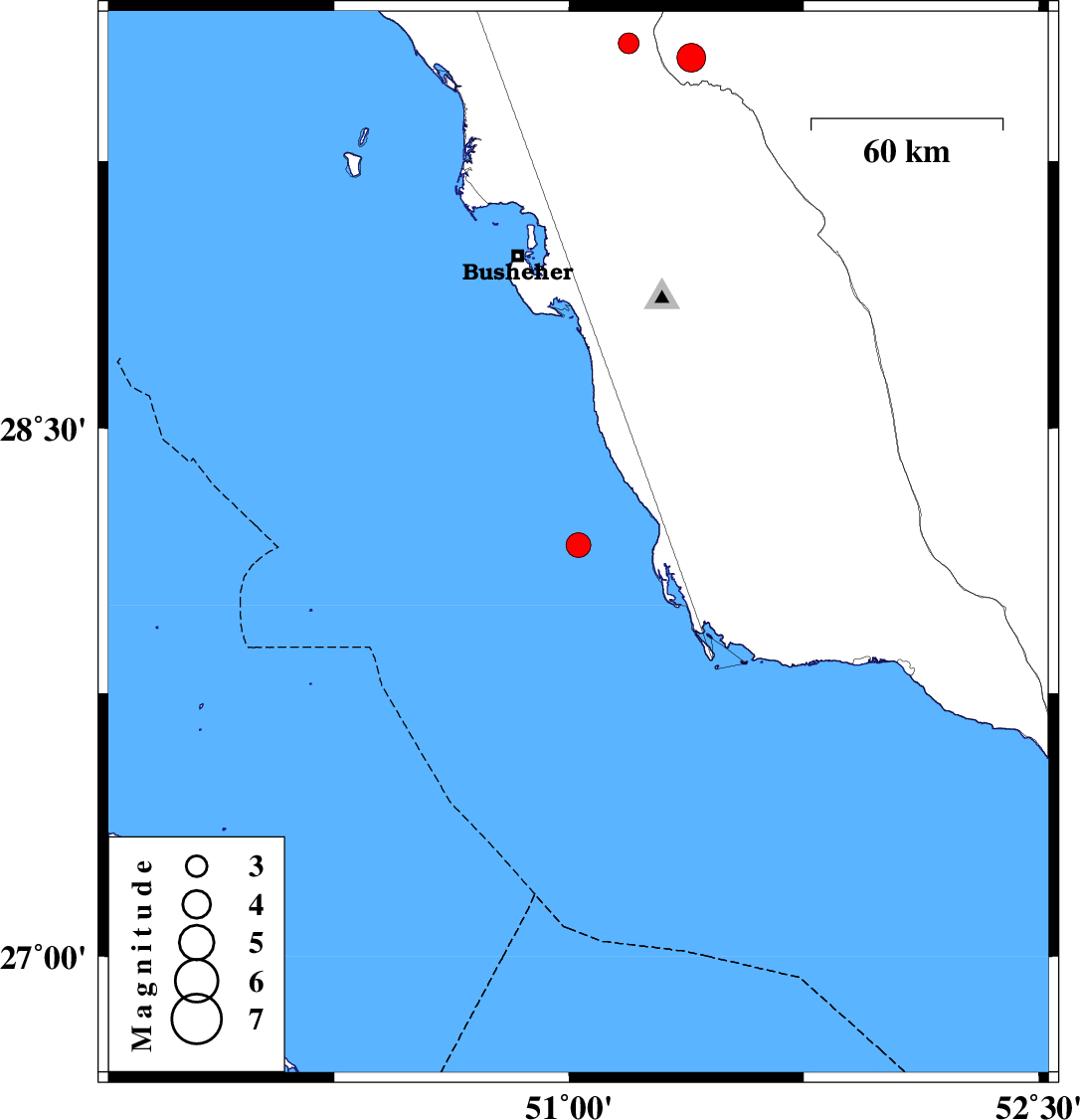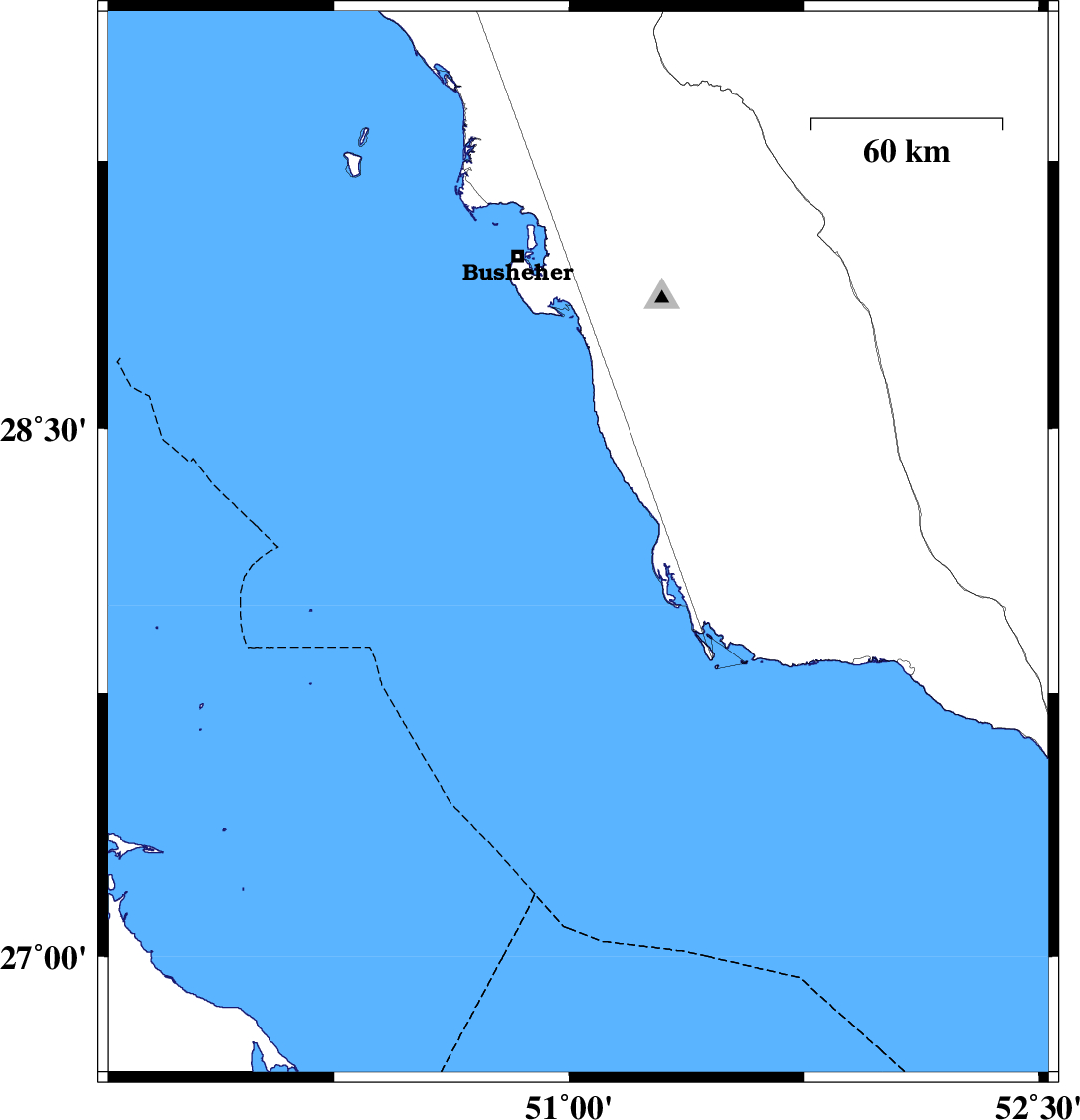 | 2011/08/27 | 01:49:19.7 | 06:19:19.7 | 29.58 | 51.19 | 14 | ML:2.9 | Bushehr Province, 35 km North of Borazjan |