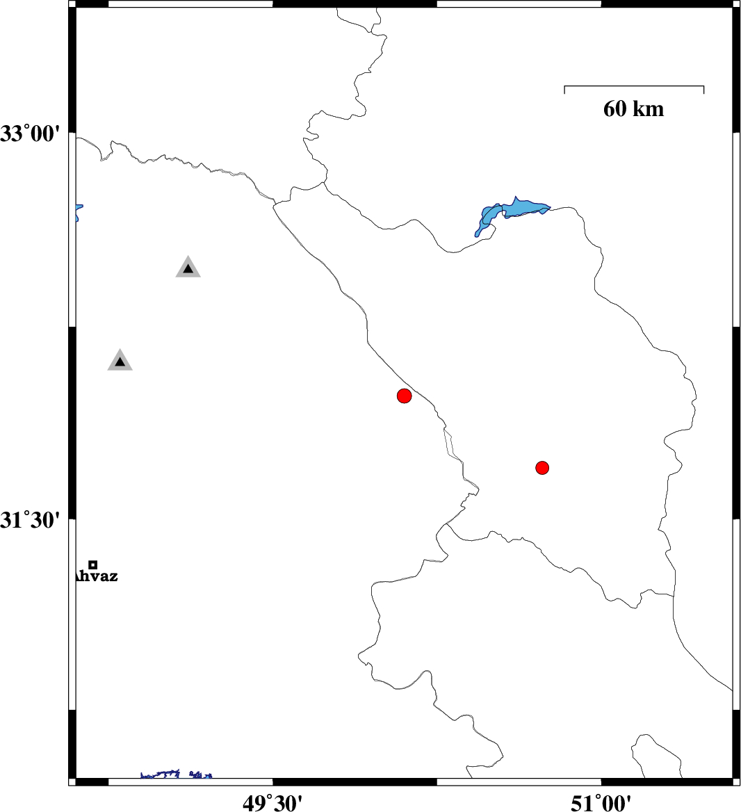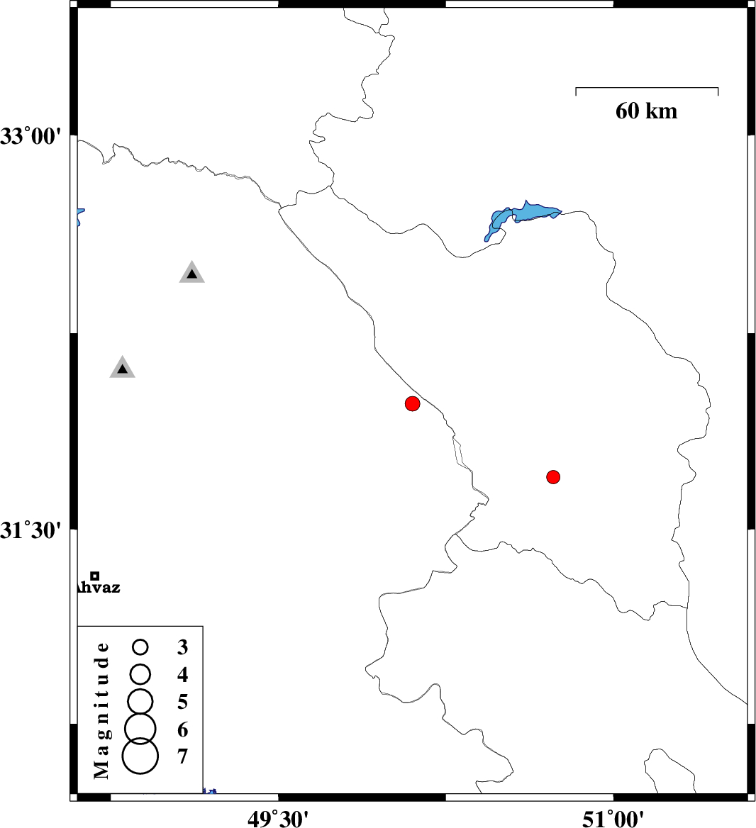 | 2011/09/04 | 18:26:26.8 | 22:56:26.8 | 31.98 | 50.1 | 14 | ML:2.9 | Khoozestan Province, 27 km North-East of Izeh | ||