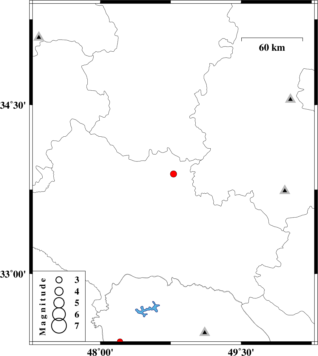 | 2011/09/11 | 15:04:09.4 | 19:34:09.4 | 33.89 | 48.78 | 16 | ML:3.1 | Lorestan Province, 2 km Borujerd | ||