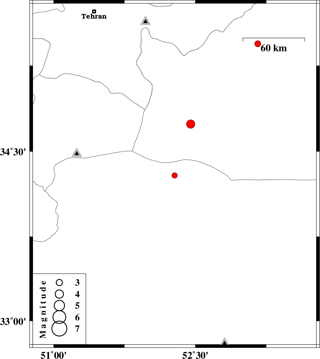 | 2011/08/28 | 14:23:16.2 | 18:53:16.2 | 34.74 | 52.45 | 14 | ML:4.1 | Semnan Province, 54 km South-East of Garmsar | ||