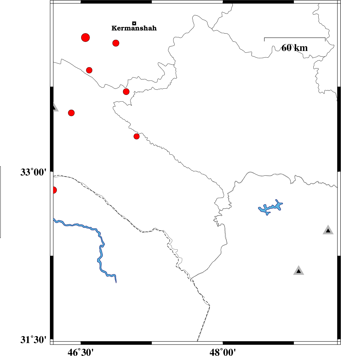 | 2011/08/22 | 10:16:52.8 | 14:46:52.8 | 33.81 | 47.37 | 14 | ML:3.1 | Ilam Province, 38 km North-West of Kuhdasht | ||