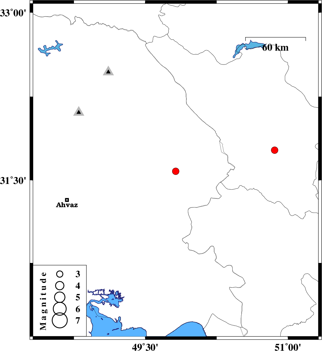 | 2011/10/05 | 17:26:38.8 | 20:56:38.8 | 31.58 | 49.82 | 17 | ML:3.3 | Khoozestan Province, 10 km Bagh Malek | ||