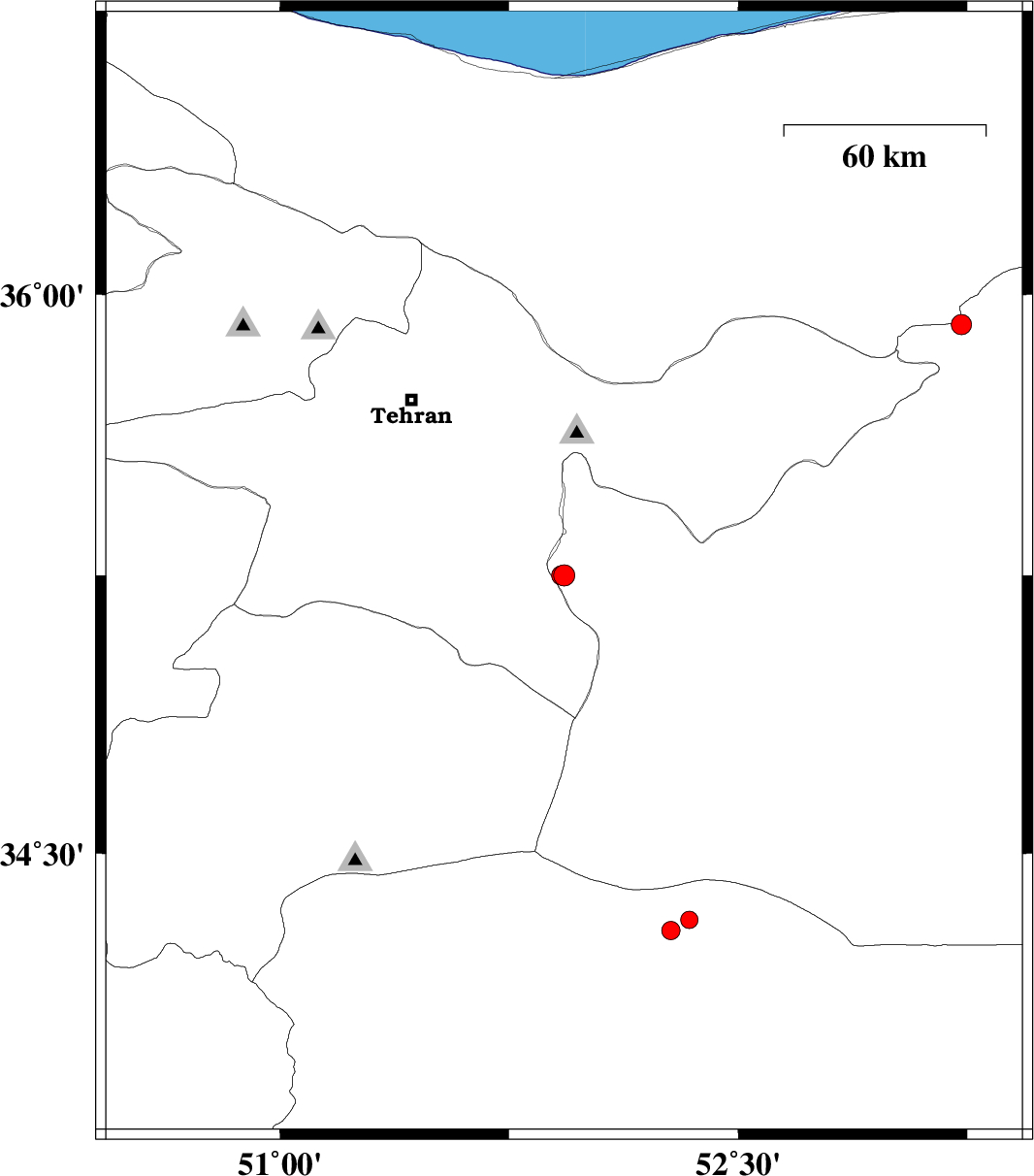 | 2011/10/07 | 00:39:11.2 | 04:09:11.2 | 35.25 | 51.93 | 15 | ML:3.1 | Semnan Province, 25 km East of Varamin | ||