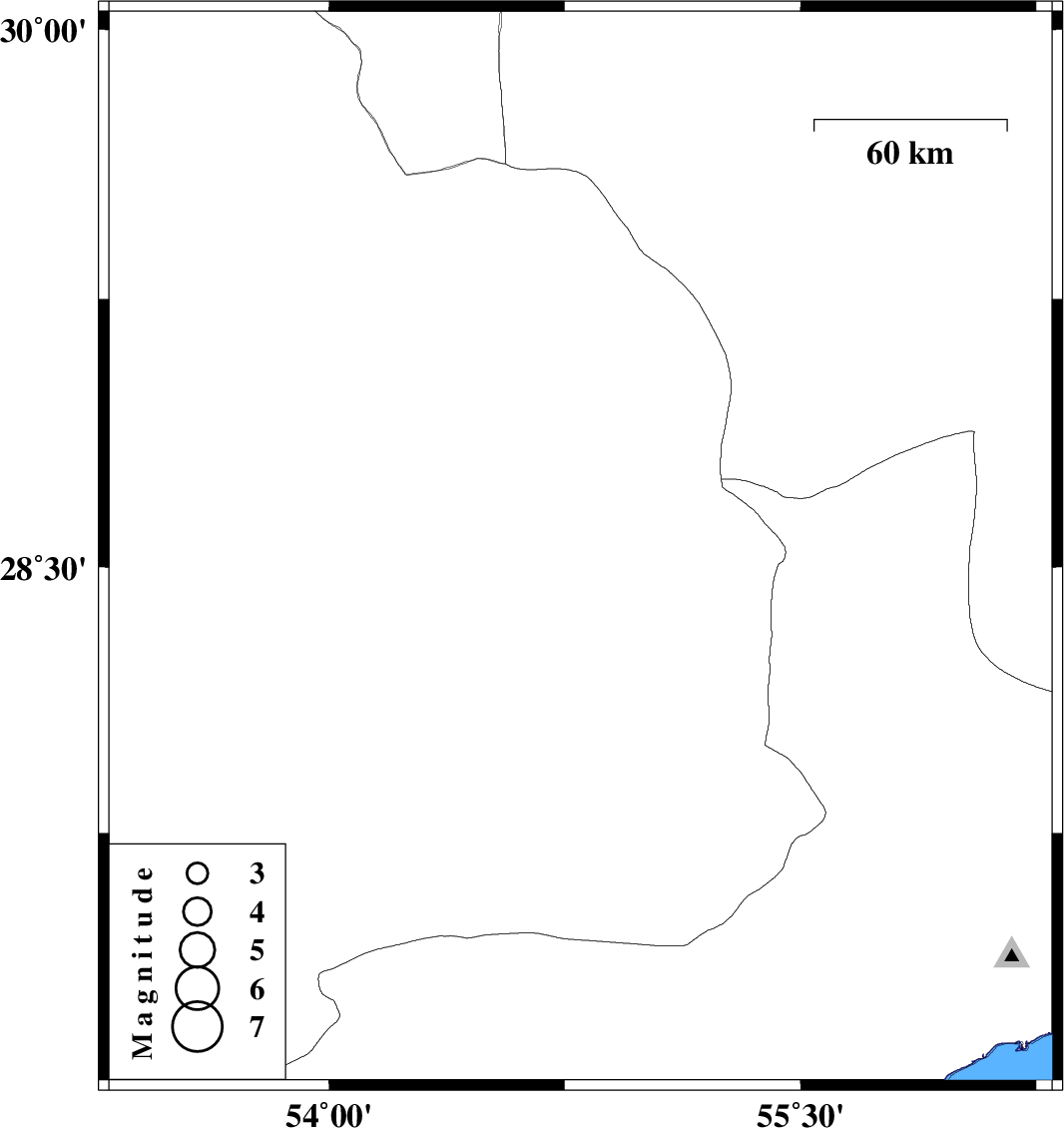 | 2011/10/08 | 01:58:28.8 | 05:28:28.8 | 28.55 | 54.8 | 18 | ML:3.1 | Fars Province, 34 km South-East of Darab |