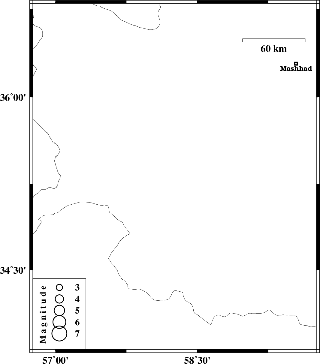 | 2011/10/11 | 07:36:40.5 | 11:06:40.5 | 35.3 | 58.26 | 15 | ML:3 | Khorasan(center) Province, 20 km West of Kashmar |