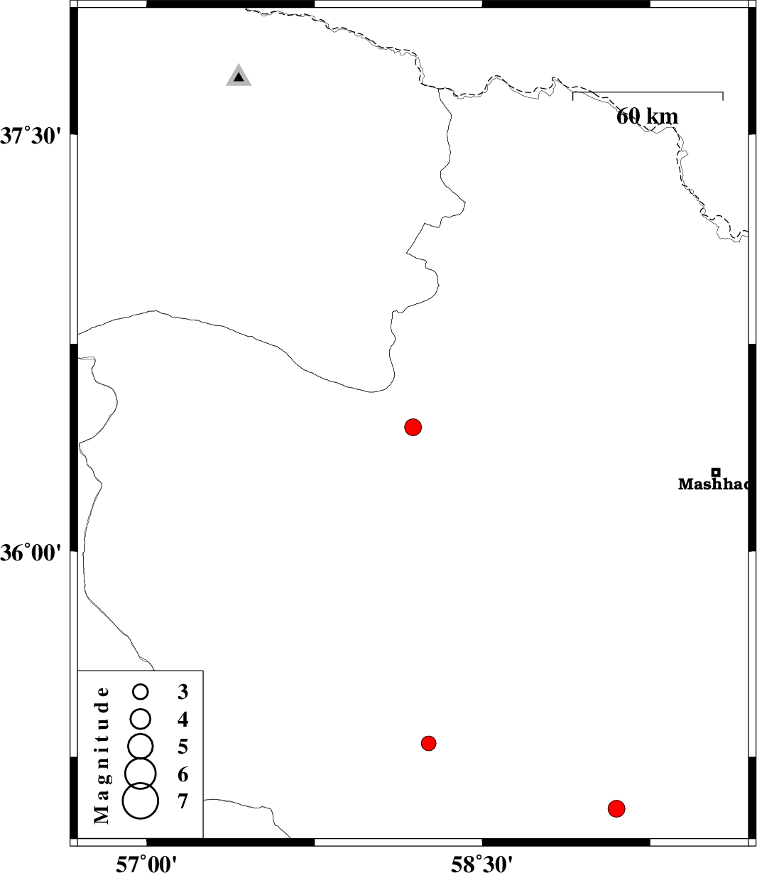 2011/10/18 | 20:08:47.5 | 23:38:47.5 | 36.45 | 58.19 | 19 | ML:3.4 | Khorasan(center) Province, 53 km North-East of Sabzevar | ||