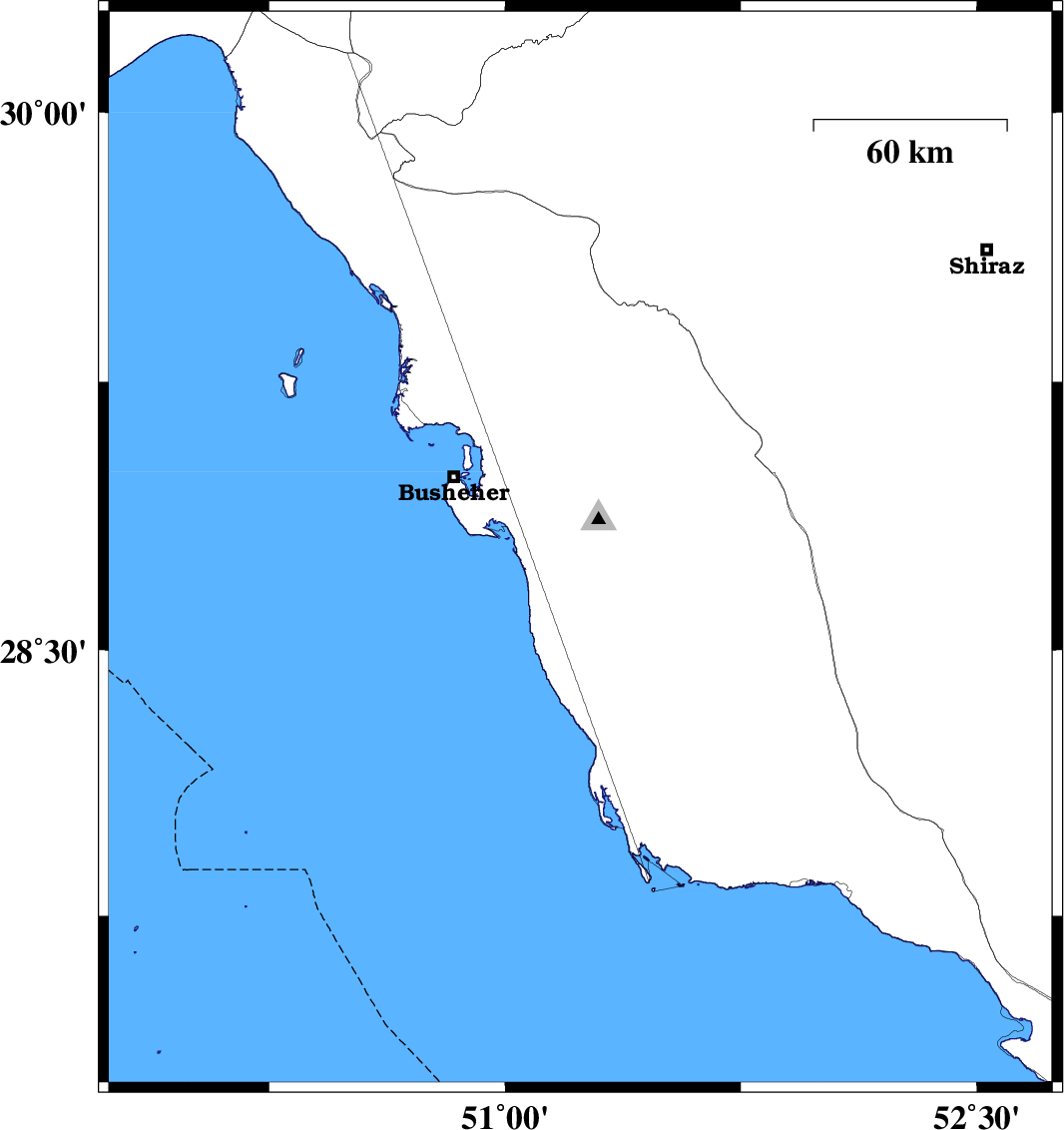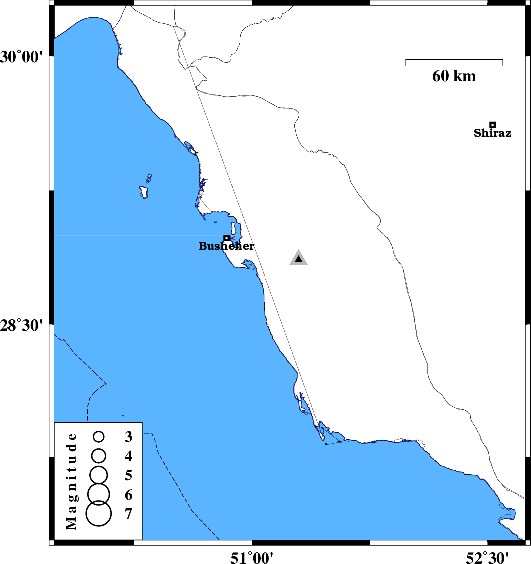| 2011/10/19 | 05:49:01.0 | 09:19:01.0 | 28.78 | 51.24 | 10 | ML:3.2 | Bushehr Province, 11 km Ahram |