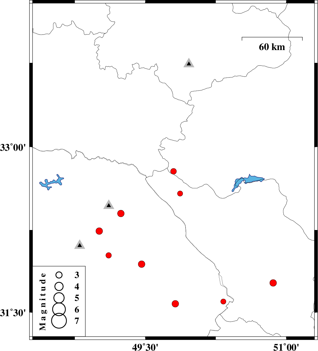 | 2011/10/19 | 16:26:33.0 | 19:56:33.0 | 32.78 | 49.8 | 15 | ML:2.8 | Esfahan Province, 34 km South-West of Fereydunshahr | ||