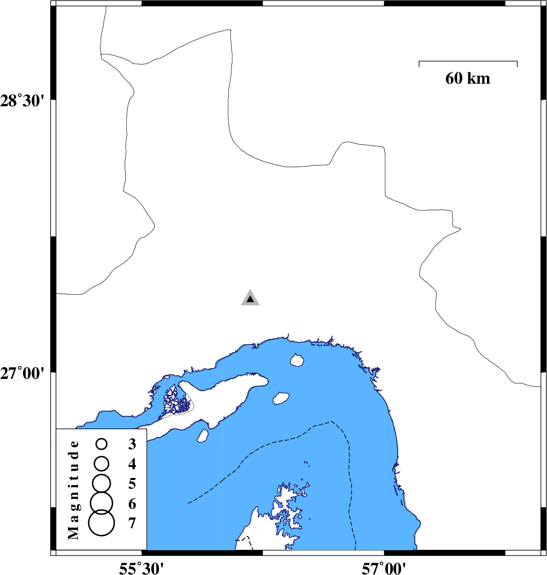 | 2011/10/20 | 06:57:26.1 | 10:27:26.1 | 27.51 | 56.47 | 16 | ML:4.3 | Hormozgan Province, 41 km North-East of Bandar-e abbas |