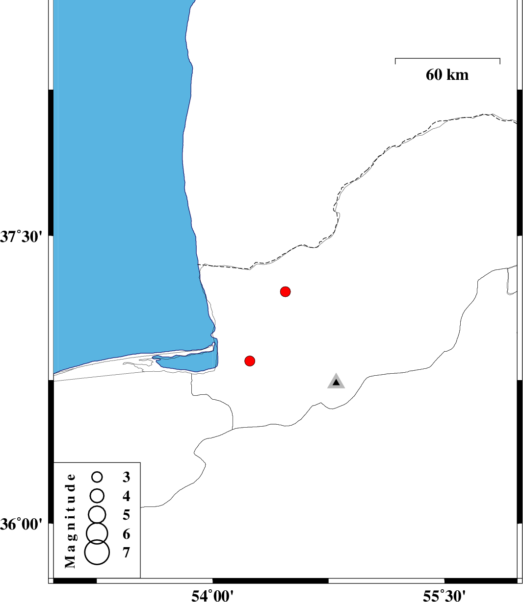 | 2011/10/23 | 01:36:10.2 | 05:06:10.2 | 37.21 | 54.47 | 14 | ML:3 | Golestan Province, 22 km North of Aq Qaleh | ||