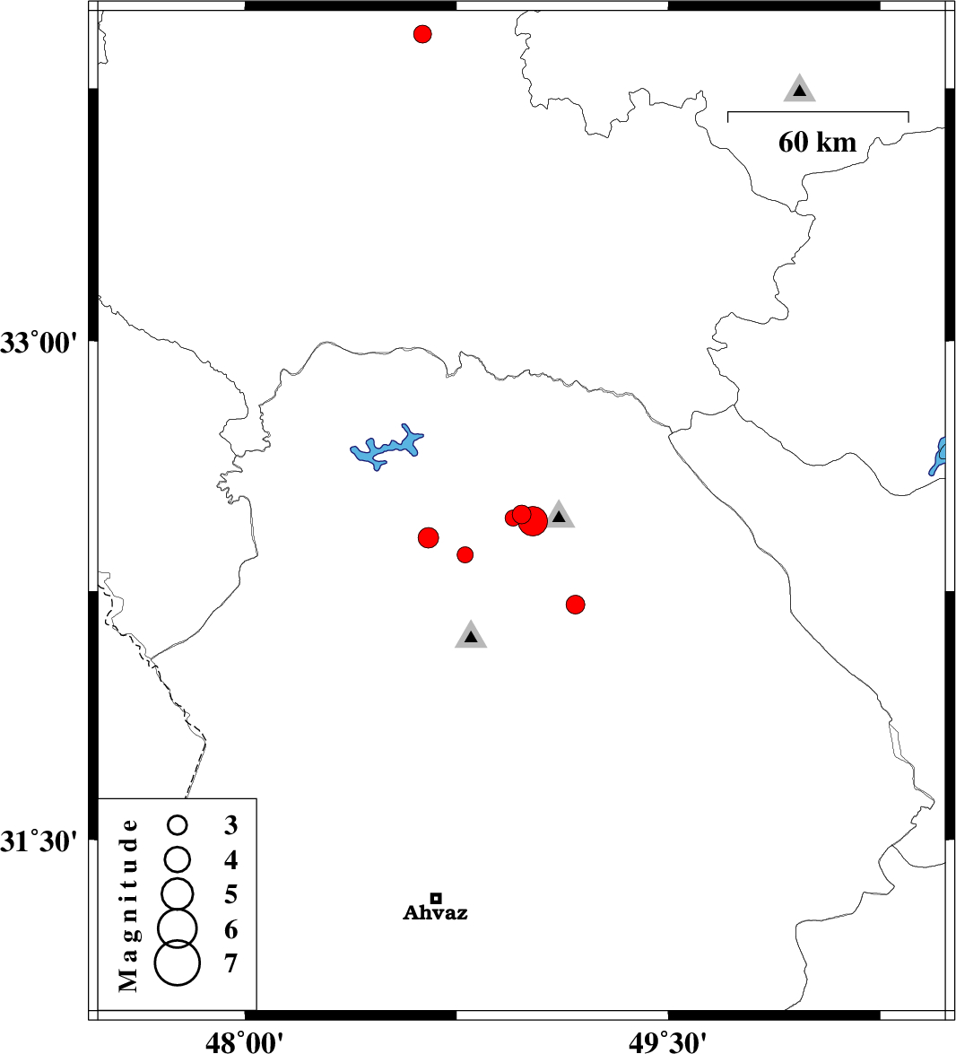 | 2011/10/30 | 01:12:06.8 | 04:42:06.8 | 32.48 | 48.98 | 15 | ML:2.9 | Khoozestan Province, 16 km West of Lali | ||