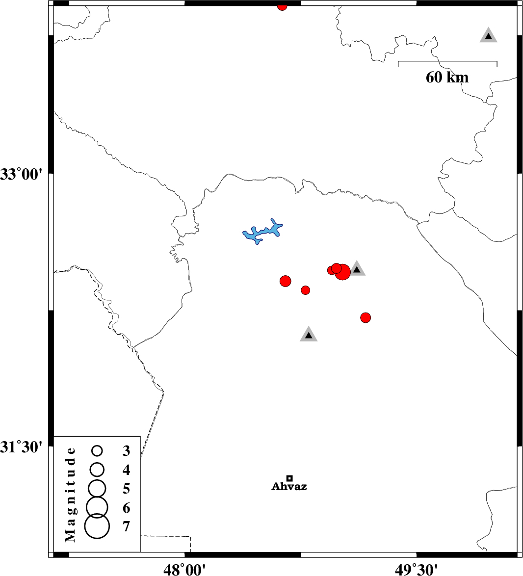 | 2011/10/30 | 01:12:06.8 | 04:42:06.8 | 32.48 | 48.98 | 15 | ML:2.9 | Khoozestan Province, 16 km West of Lali | ||