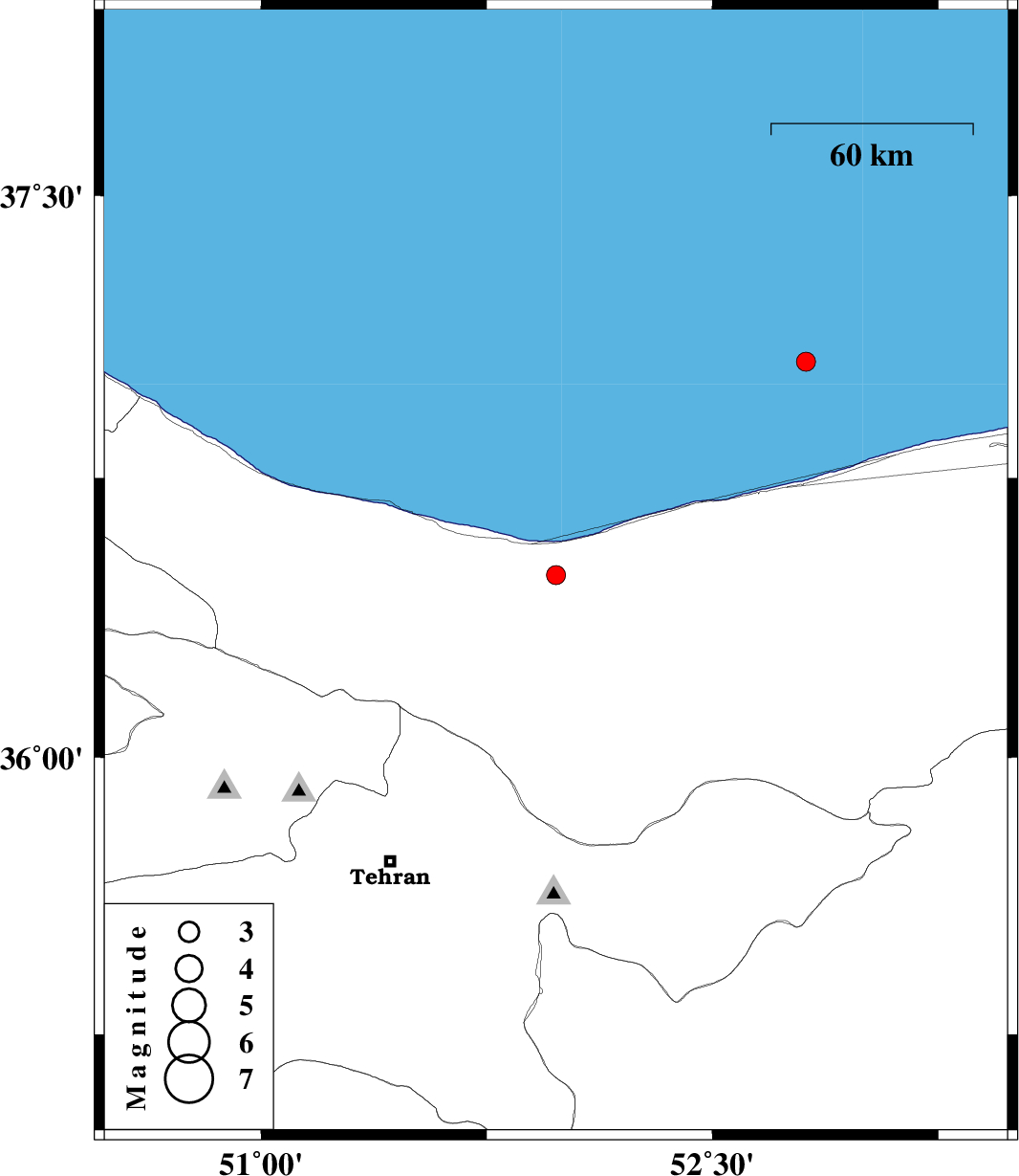 | 2011/10/26 | 17:09:54.6 | 20:39:54.6 | 37.06 | 52.81 | 17 | ML:2.8 | Caspian Sea, 43 km North-East of Babolsar |