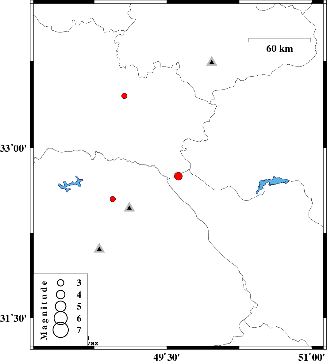 | 2011/11/05 | 04:40:40.5 | 08:10:40.5 | 33.45 | 49.06 | 14 | ML:2.5 | Lorestan Province, 4 km Dorud | ||