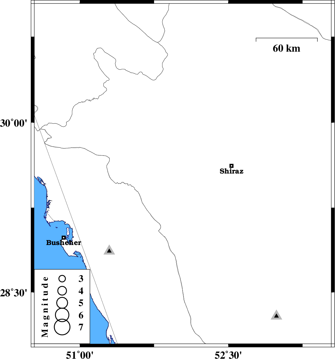 | 2011/11/07 | 15:18:41.2 | 18:48:41.2 | 29.54 | 52.04 | 18 | ML:3.1 | Fars Province, 38 km East of Kazerun |