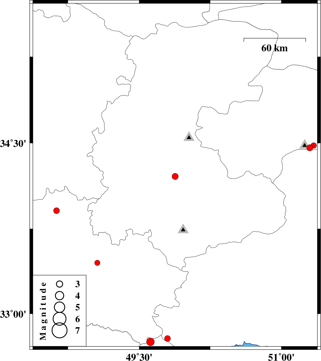 | 2011/11/09 | 06:48:05.5 | 10:18:05.5 | 34.21 | 49.88 | 7 | ML:3 | Markazi Province, 22 km North-East of Arak | ||
