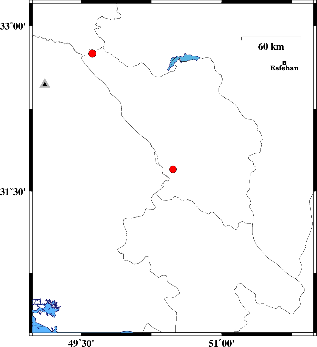 | 2011/11/07 | 10:52:12.0 | 14:22:12.0 | 32.75 | 49.62 | 6 | ML:3.7 | Chaharmahal Bakhtiari Province, 51 km South-West of Fereydunshahr |