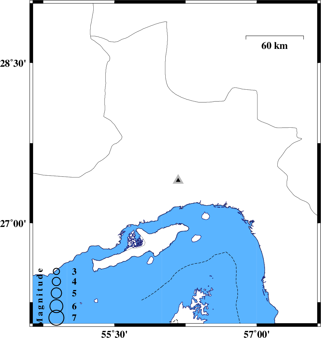 | 2011/11/05 | 07:45:44.5 | 11:15:44.5 | 26.83 | 55.14 | 40 | ML:3.1 | Hormozgan Province, 44 km North-East of Bandar-e lengeh | ||