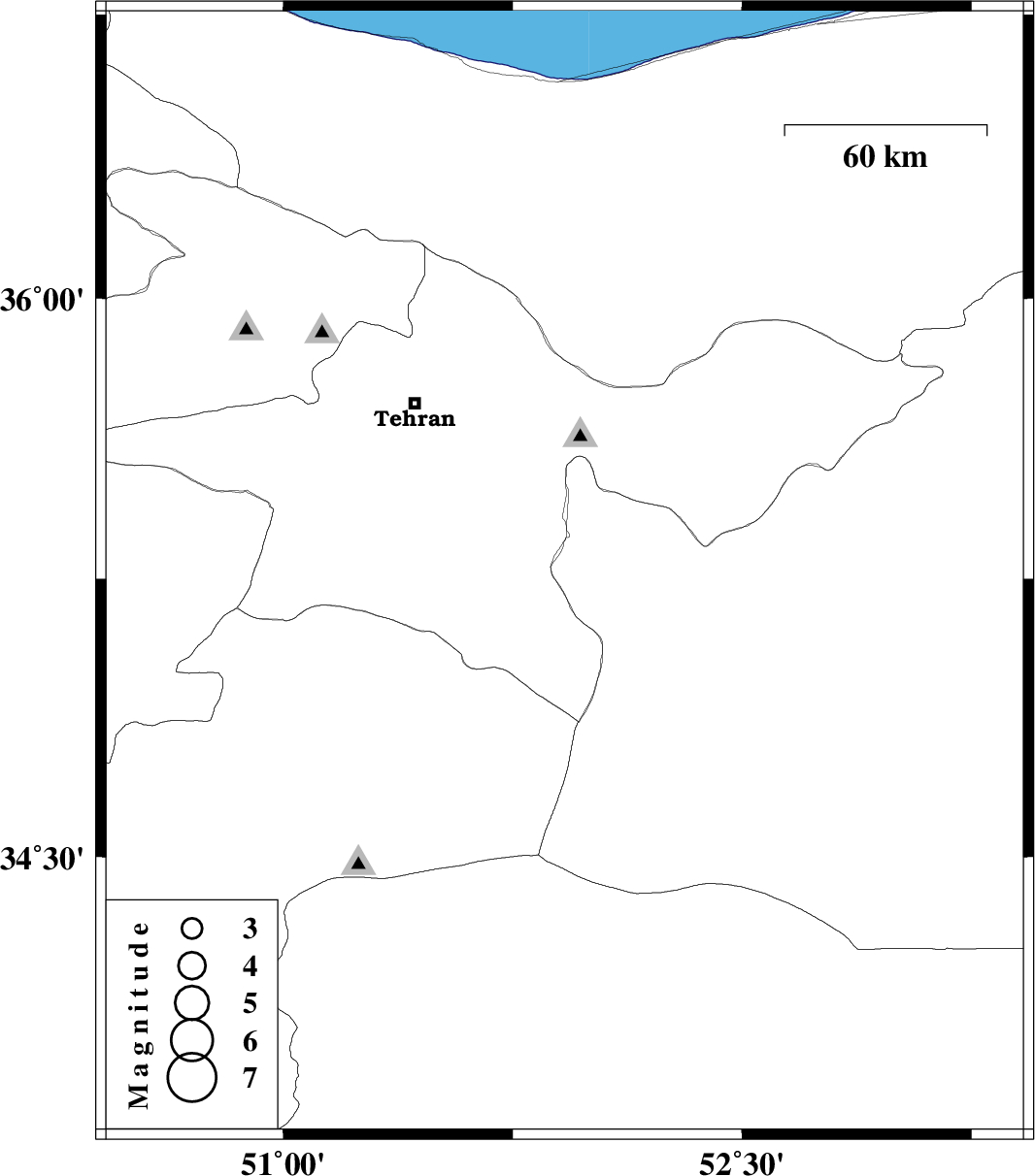 | 2011/11/20 | 13:19:08.2 | 16:49:08.2 | 35.26 | 51.92 | 18 | ML:3.3 | Semnan Province, 24 km East of Varamin |