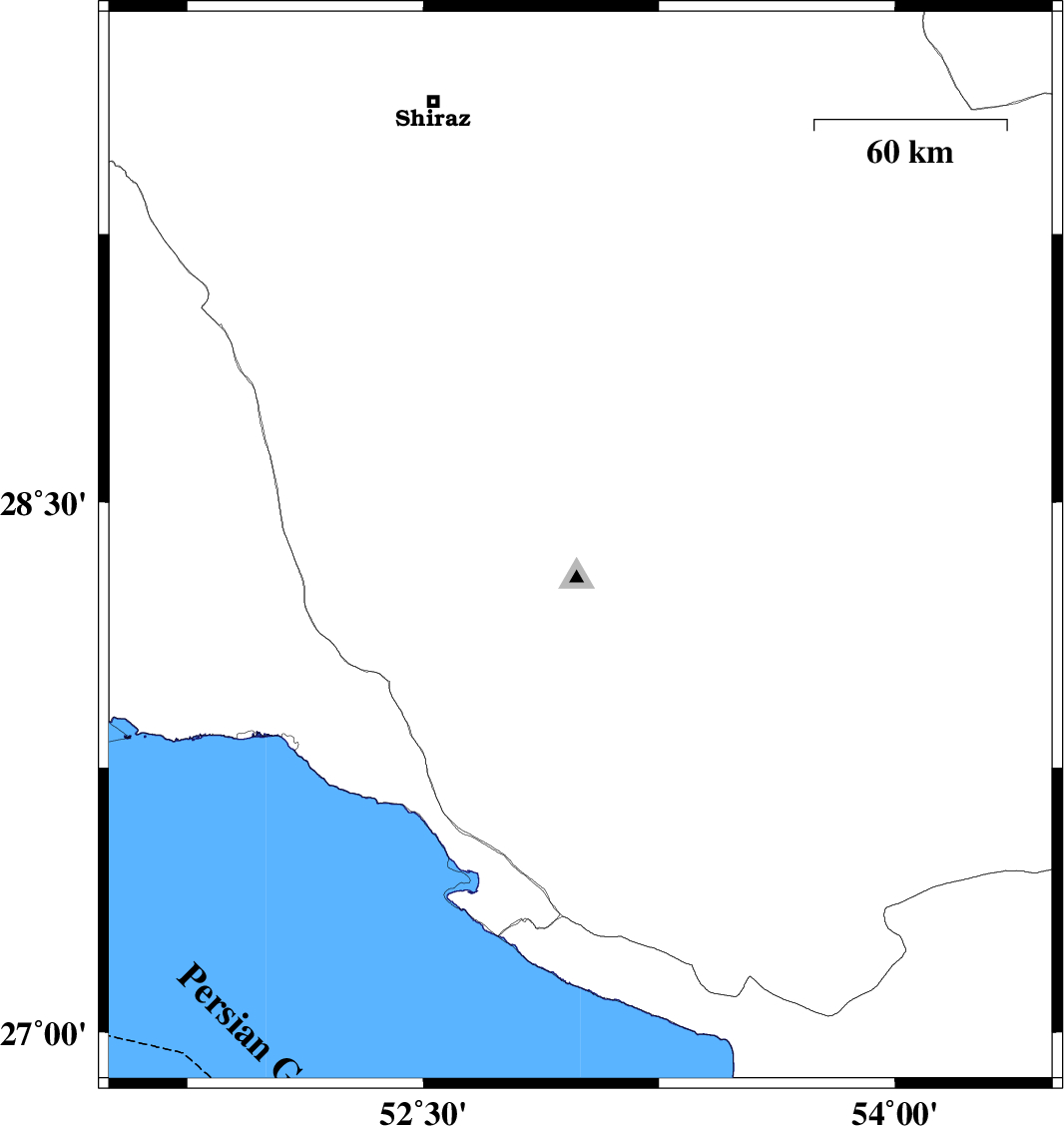 | 2011/11/20 | 19:56:39.5 | 23:26:39.5 | 28.37 | 53 | 11 | ML:3 | Fars Province, 11 km Qir va Karzin | ||