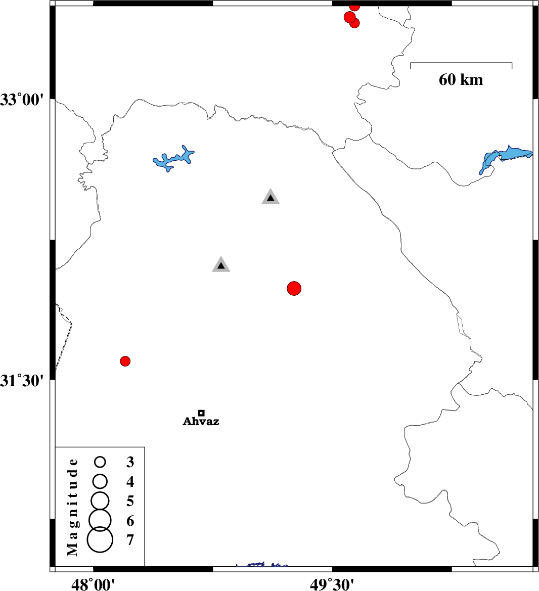 | 2011/11/24 | 14:10:30.2 | 17:40:30.2 | 31.99 | 49.26 | 14 | ML:3.9 | Khoozestan Province, 7 km Masjed Soleyman | ||