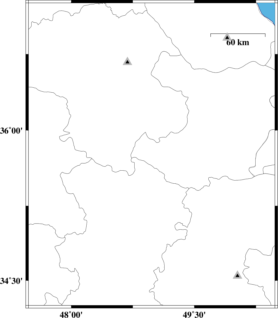 | 2011/11/22 | 01:54:24.6 | 05:24:24.6 | 35.76 | 48.86 | 14 | ML:2.5 | Ghazvin Province, 45 km North-West of Razan |